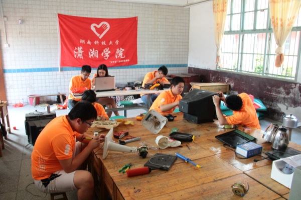 上午结束,一台本该“退休”的电视机,被完好地放置在临时仓库里,等待着它的主人把它领回家。乡民的信任,为学院“三下乡”义务维修组提供了自我锻炼的机会,也搭建了“科技下乡”的服务平台。