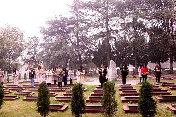 上午8点30分,支部党员就在北门的公交车站集合,紧接着秩序的上车。在支部书记廖九英老师的带领下,支部全体党员来到了湘潭西郊的烈士陵园。首先由廖九英同志带领支部党员为在衡宝战役中英勇献身的129名烈士轻擦墓碑上的灰尘,紧接着每位党员都庄严肃穆。每位党员手持白菊肃立于墓前,为革命烈士默哀三分钟,三鞠躬之后,各位党员献上白菊。