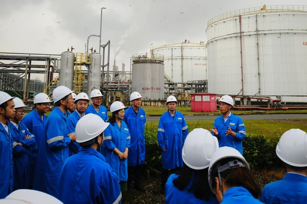 中国航油质计中心主任李刚带领大家参观航空煤油输油首站。四川石化公司通过“环保型全加氢总工艺流程”将原油炼制成3号喷气燃料后,在此处增压、过滤、净化、计量后,通过长约200km的管道输送至双流机场和天府机场,是成都双机场运行的重点保障单位。