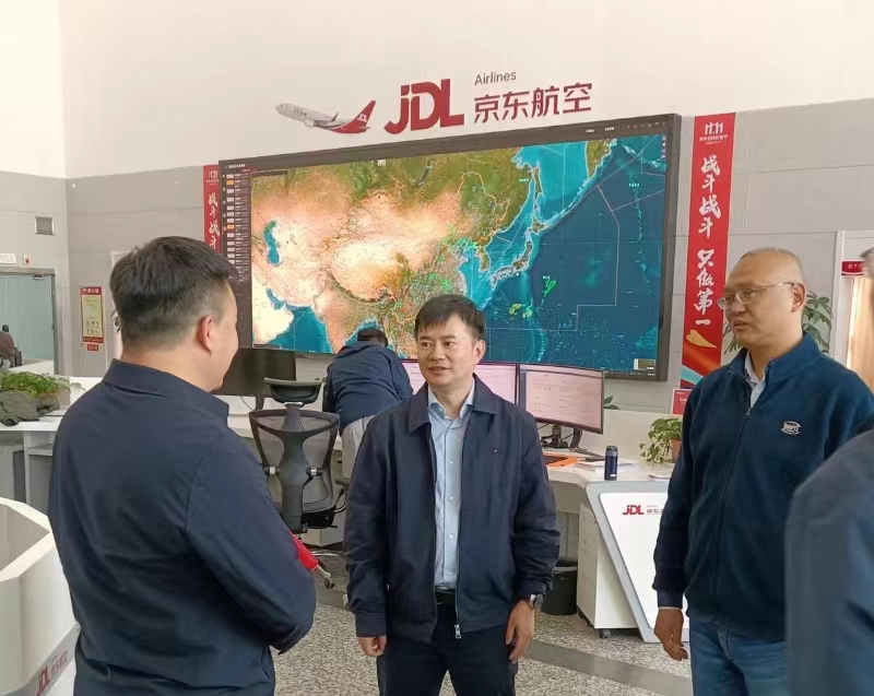 本网讯 雷志良摄影报道:为进一步加强校企合作,助推民航安全能力建设,推动开云kaiyun体育专业人才培养体系建设,促进学科专业人才培养。4月11日,开云kaiyun体育党委书记孔鹏、安全工程系陈勇刚主任一行访问了京东货运航空有限公司,拜会了京东航空总裁张月斌,并与京东航空安全总监周兵、安全监察部总经理李伟杰等人针对科技创新、人才培养、安全培训等方面合作进行了交流。