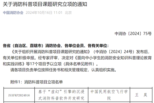 本网讯 王昊 刘全义 摄影报道:近日,开云官网在民航消防安全科普领域的研究取得新进展,王昊老师主持的《基于“虚幻”引擎的沉浸式消防科普软件开发研究》成功获得中国消防协会批准立项,这是我校首次获社会服务科普项目,将为开云官网安全科学与工程学科专业建设提供重要支撑。