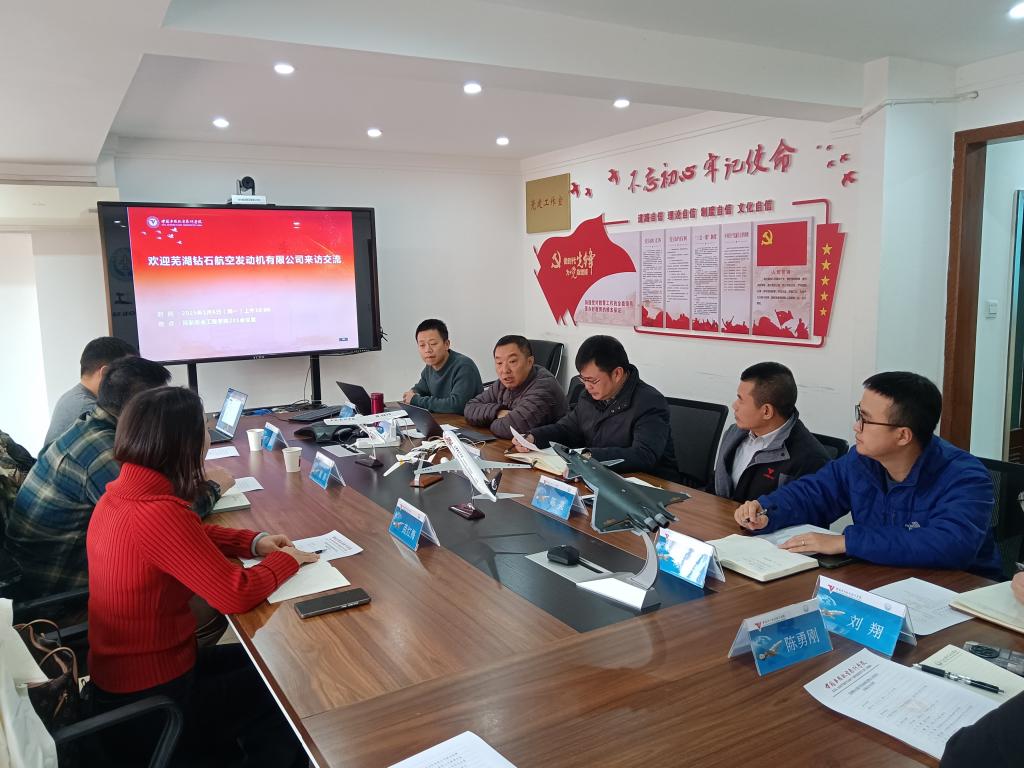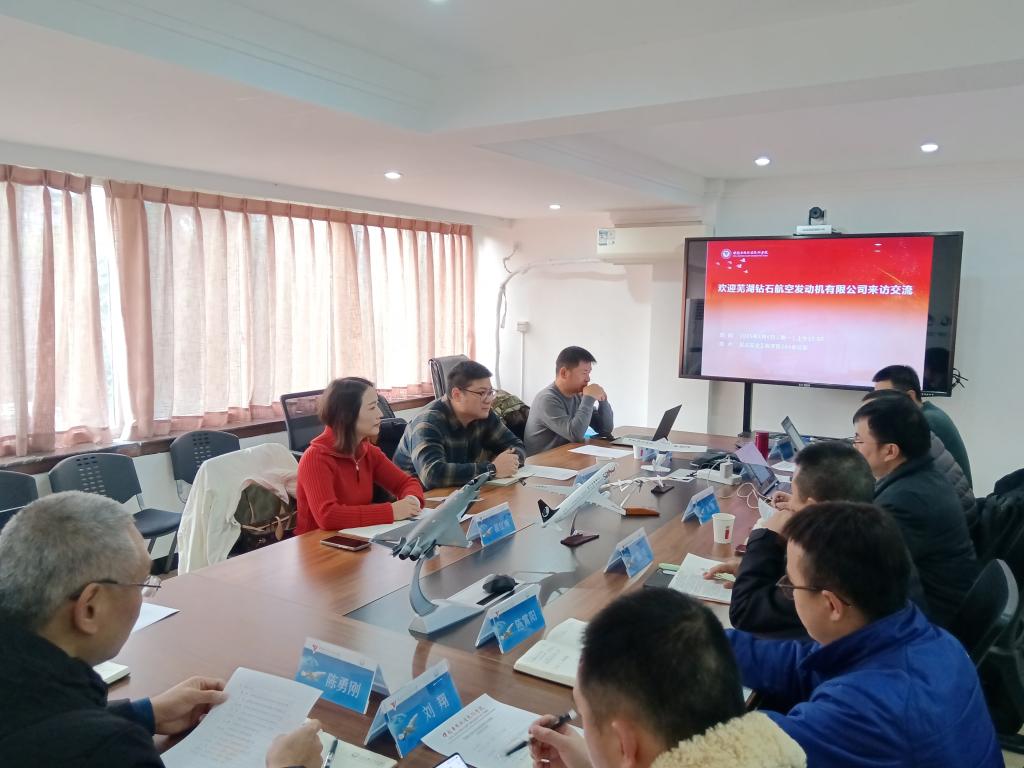 孔鹏书记代表学院对戴晟副总经理一行的到访表示欢迎,并就学院的学科建设、科学研究、学生培养、发展规划等情况做了详细介绍;芜湖钻石航空发动机有限公司戴晟副总经理对公司及团队的情况、国产航空发动机科研及产业化进展等进行了细致讲解。参会人员就人才培养、产学研合作、项目联合申报和应用模式等交换意见和建议,达成了学院和公司产学研合作意向。