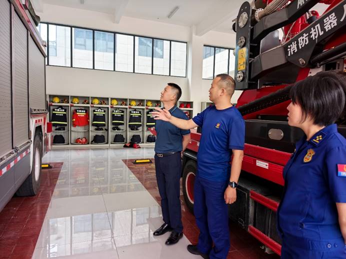 会后,广汉市消防救援大队大队长张文和中队长马科介绍了部分消防技术装备。针对举高喷射消防车和不同容量的水罐消防车进行了详细介绍,并强调了特有的消防机器人,可远程操控处置极端险情。此外,还介绍了消防救援需要携带的相关装备,为教学提供了诸多实例。