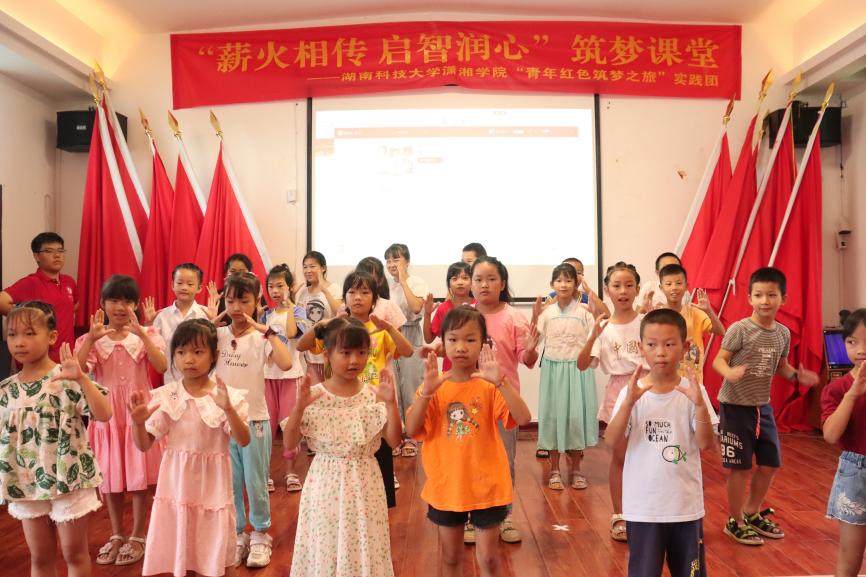 小暑清和夏日长,汇演笑语颂风华。走近湖南省怀化市通道侗族自治县万佛山镇木脚村,外面雨声如织却掩盖不住教室里此起彼伏的欢呼声和掌声。建团百年之际,为丰富当地人民精神文化生活,助力乡村文化振兴,7月19日上午,beat365官方网站“青年红色筑梦之旅”实践团组织开展了“筑梦课堂”文艺汇演暨教学成果作品展。本次活动邀请了省人防办人事处副处长驻木脚村工作队长何绍芳,省人防办指挥通信处副处长驻木脚村工作队员申利华,木脚村党总支书记吴菊凤,木脚村党总支副书记杨进松等出席,湘潭大学和湖南中医药大学大学生社会实践团代表、beat365官方网站实践团全体成员与当地村民参加活动。