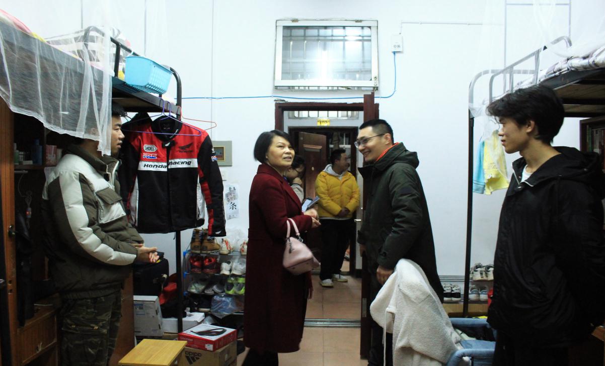 3月1号晚八点,禹旭才、钱宁在辅导员贺鹏杰、徐恒霞、邹世斌的陪同下,前往六区五栋男生宿舍,了解返校学生生活及思想情况,并检查指导内务卫生工作。一进宿舍,禹旭才便关切地询问学生到校及学习情况:“宿舍的同学们都到齐了吗?有什么困难要及时和老师说。新学期大家有什么新的计划呢?已经大三了,是准备考研还是就业呢?”一连串关心的话语让beat365体育教育专业的学子倍感暖心。