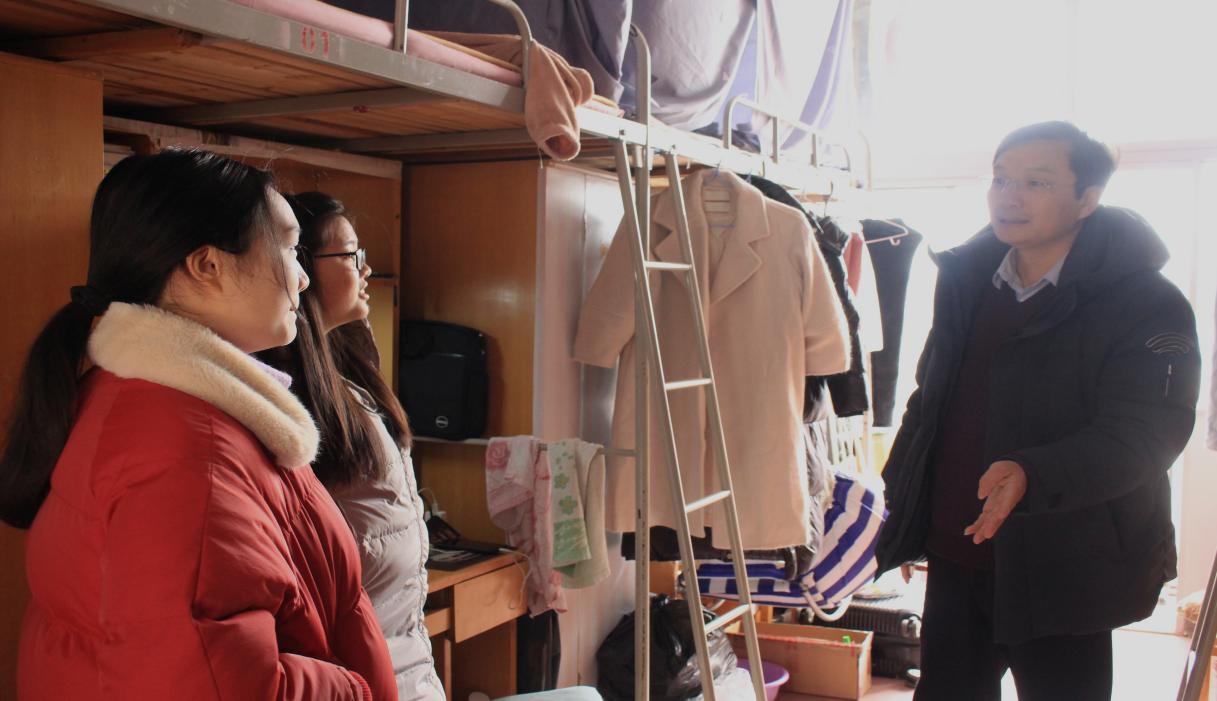 为统筹做好返校生复学工作,准确把握毕业生毕业心态、就业意愿和就业方向,确保学生在舒适温馨的校园中安心学习和生活,自2月28日至3月2日,beat365院长禹旭才、党委书记周光明、党委副书记廖双红、学工办副主任钱宁先后在辅导员的陪同下,前往返校学生宿舍进行慰问。