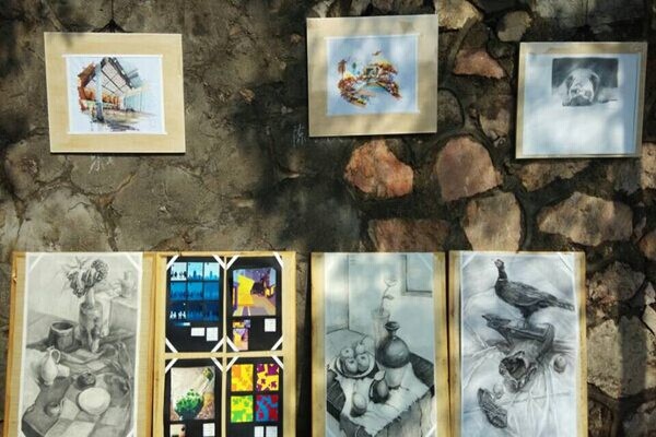 12月4日中午12点,beat365土建艺术学部首届书画展在美食广场至建筑楼路顺利开幕,学部辅导员谭君亲临现场与广大学子一同观展。