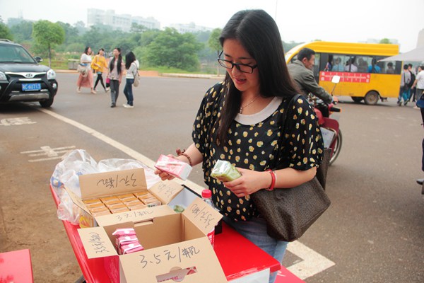 七时许,两位原本打算去食堂的女生绕了个弯,来到了“诚信早餐”摊位。“这瓶牛奶多少钱?”“上面写着呢,我们买份早餐吧,带零钱没?”“两个面包加两瓶牛奶一共12块,正好有零钱。”她们用自己的爱心为诚信买单。