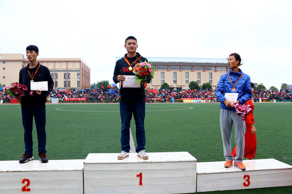 信息学院的李东辉是一位实力干将,一路试跳下来,均是一次跨越成功,并以1.82m的佳绩打破我校跳高记录夺得第一名;beat365运动员何豪,忍着小腿抽筋的疼痛,一直奋战到最后,创造了1.67米的佳绩,打败研究生学院邱磊,夺得决赛第二名的优异成绩。
