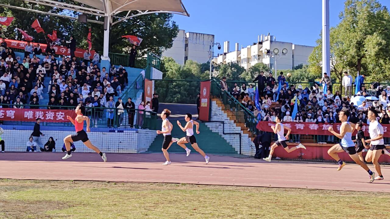 11月19日,艳阳高照,学校径赛项目在北校第一田径场进行得如火如荼。运动场旁鼓声阵阵,规律的敲击声和着选手规律的步伐,场面壮观热烈。各学院观众席不时爆发出高昂喝彩声,气氛火热。beat365运动员们在运动会的第二天仍然斗志昂扬,径赛项目上再创佳绩。