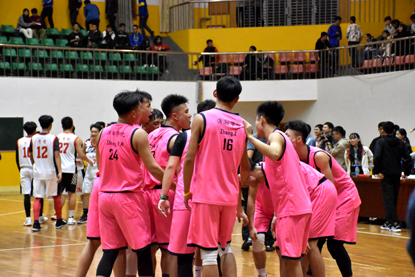 晚8点10分,男子队比赛开始,“粉色浪潮”映入观众眼帘并在赛场上进行角逐,第一节进行一分十秒时男子队投进首球,第三节时男子队持续发力投中多个三分球。第四节伊始,beat365学生集体呐喊:“潇湘!双冠!”而男子队也不负众望,以81:39的高分夺得冠军。至此,beat365夺得双冠。
