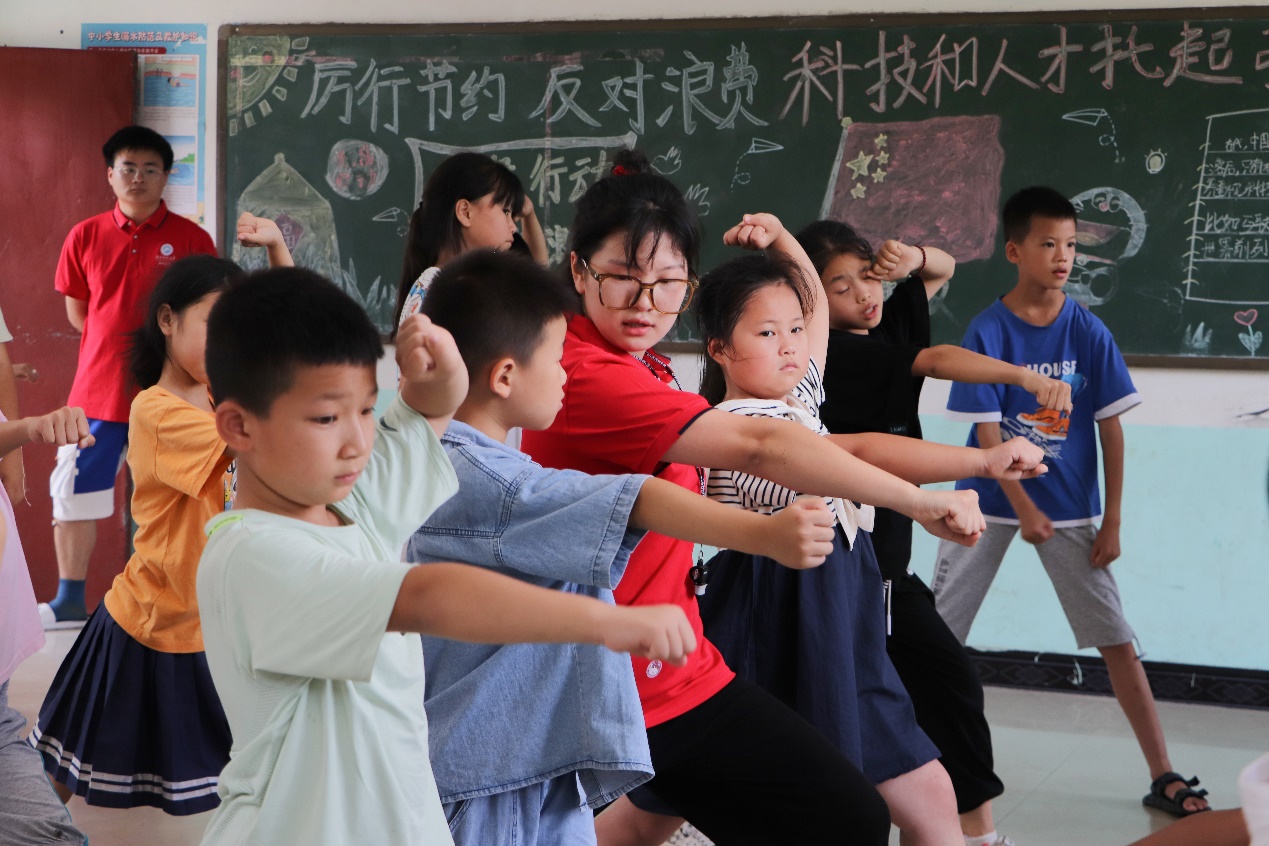 清风徐来,天朗气清。为进一步推进“五育融合”实施,让每个学生感悟运动的快乐,体验生命的活力,张扬生命的精彩,7月9日下午,beat365暑期“三下乡”实践团队于万佛山镇木脚村完全小学开展武术课、障碍赛等“强身健体”系列课程。