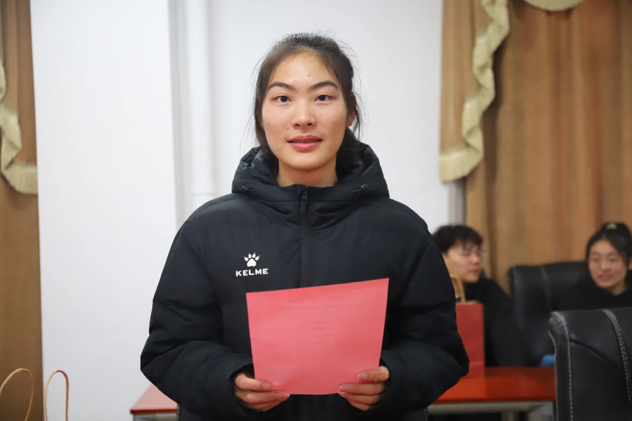 2024届考研学子代表20级体教一班陈慧华、20级英语教育二班刘肖涛代表学院考研学生进行发言。他们提到备考路上的辛苦与收获,与大家分享了自己在考研学习途中的心得。23级机设二班林星翔代表所有在校学生为2024届所有考研的学长学姐送上最真挚的祝福,“希君生羽翼,一化北溟鱼”。